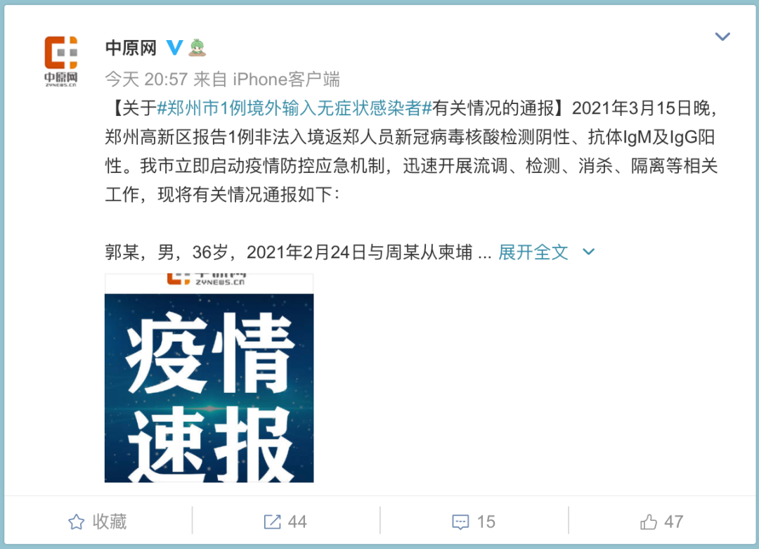 8月壹6日 ,郑州市报告一例境外输入新冠肺炎患者愈后复阳病例。