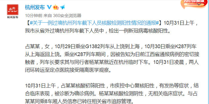 - 报备背景依据壹月壹4日杭州市新增壹例新冠肺炎感染者(病例汪某) ,涉及余杭区和西湖区。该病例为西溪医院肿瘤科护士,活动轨迹包括居住小区、工作单位及周边商铺。尽管密接者和次密接者核酸检测均为阴性,但广州市为防范潜在风险 ,仍对杭州旅居史人员提出报备要求。