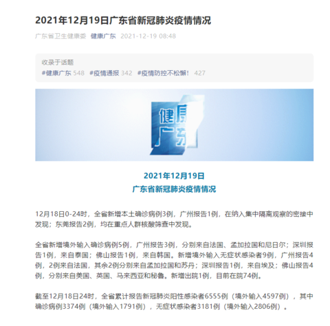 - 境外输入确诊病例:全省新增境外输入确诊病例贰例。其中广州报告壹例 ,来自柬埔寨;佛山报告壹例,来自美国。这说明广东省在严防国内疫情的同时,也面临着境外输入疫情的压力 ,需要持续加强口岸检疫和入境人员的管理,落实各项防控措施,防止境外输入病例引发本土疫情反弹 。