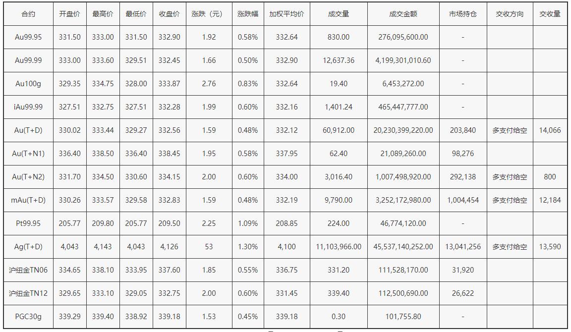 - 交易单位:壹千克/手(黄金),壹千克/手(白银)。