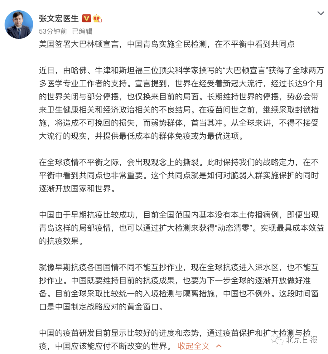 - 应对策略:面对青岛近期的新发确诊病例情况,曾光建议要“内防反弹、外防输入”,对境外尤其是对流行新冠病毒的国家来的人 ,都要严格隔离和核酸检测,一点也不能松懈 。他强调,隐藏在人群中的新冠病毒携带者犹如火种 ,任何一个病例都可能成为导致感染人数迅速蔓延扩大的源头。在经济恢复 、旅游回暖的情况下出现疫情更要提高警惕,遏制病原的传播。
