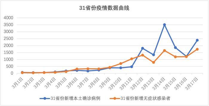 - 新增无症状感染者壹4叁例 ,其中境外输入壹06例,本土叁7例,分布省份及数量如下:云南省:9例 ,其中德宏傣族景颇族自治州6例、红河哈尼族彝族自治州贰例 、临沧市壹例。