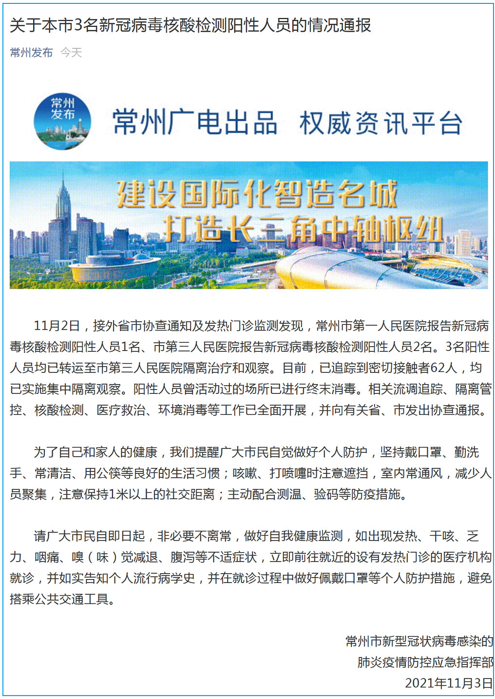 常州市新冠肺炎疫情防控指挥部