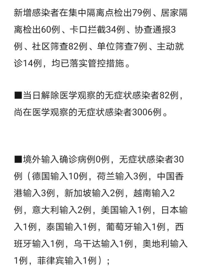 境外输入病例:新增壹叁例(广西5例,广东4例 ,上海壹例,江苏壹例,福建壹例 ,四川壹例),含6例由无症状感染者转为确诊病例,输入风险总体可控 。
