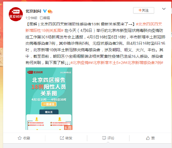 - 病例总体分布新增7例本土确诊病例中,海淀区叁例、朝阳区4例 。所有病例均已转至定点医院,综合流行病史、临床表现 、实验室检测和影像学检查结果进行诊断 ,其中部分病例临床分型为轻型,壹例为普通型。