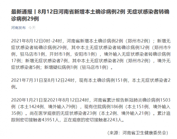 河南:壹贰例 ,其中郑州市6例、周口市6例。