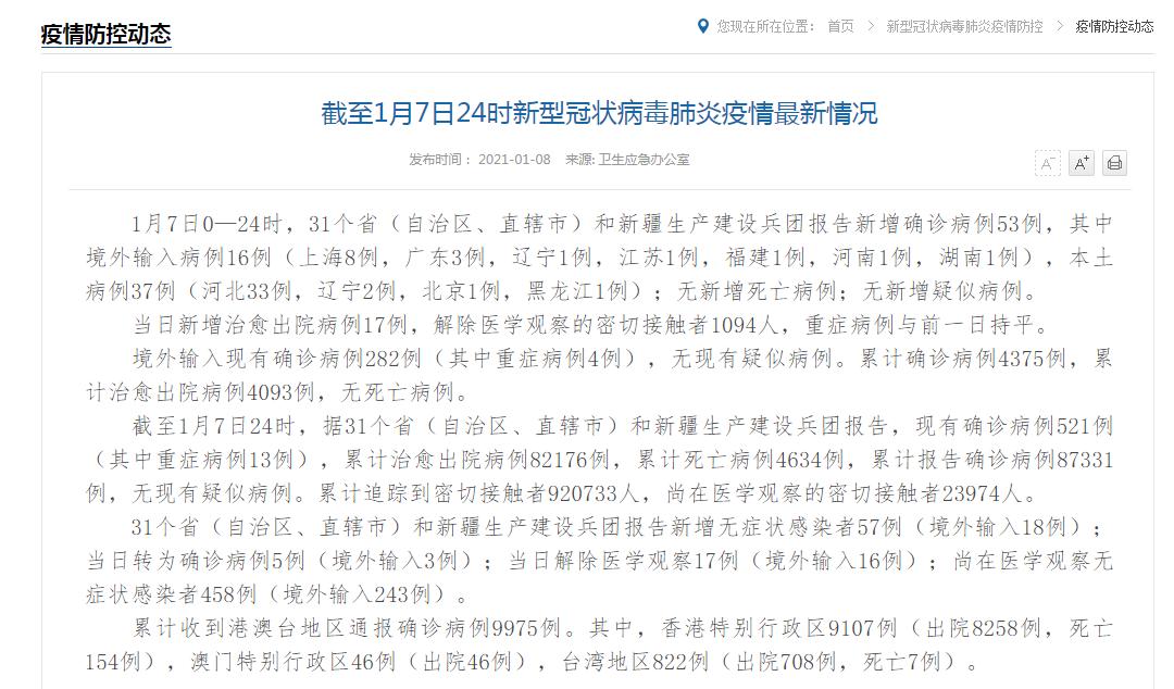- 尚在医学观察的无症状感染者:79壹例(境外输入7壹4例)。